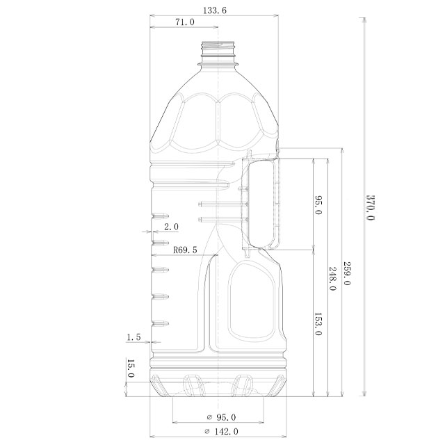 取っ手が付いて使い易い大容量用のペットボトルです。